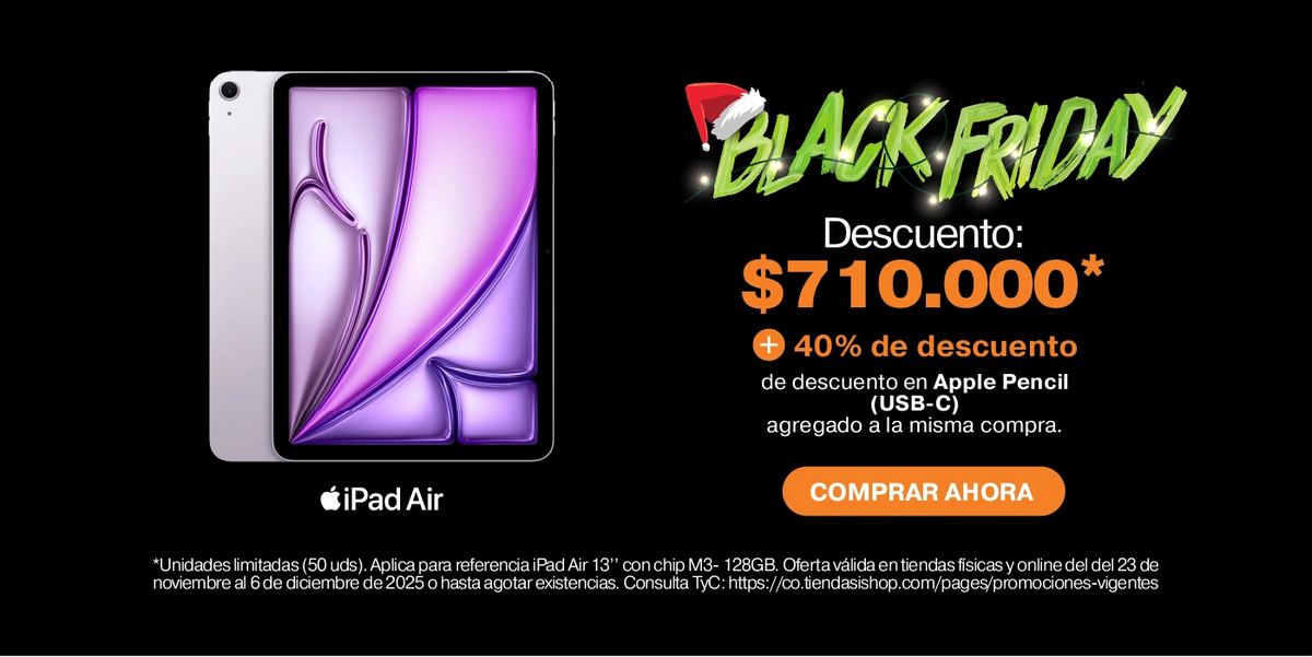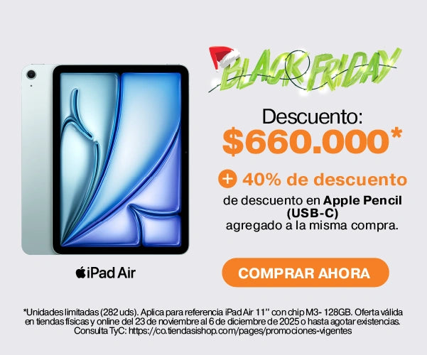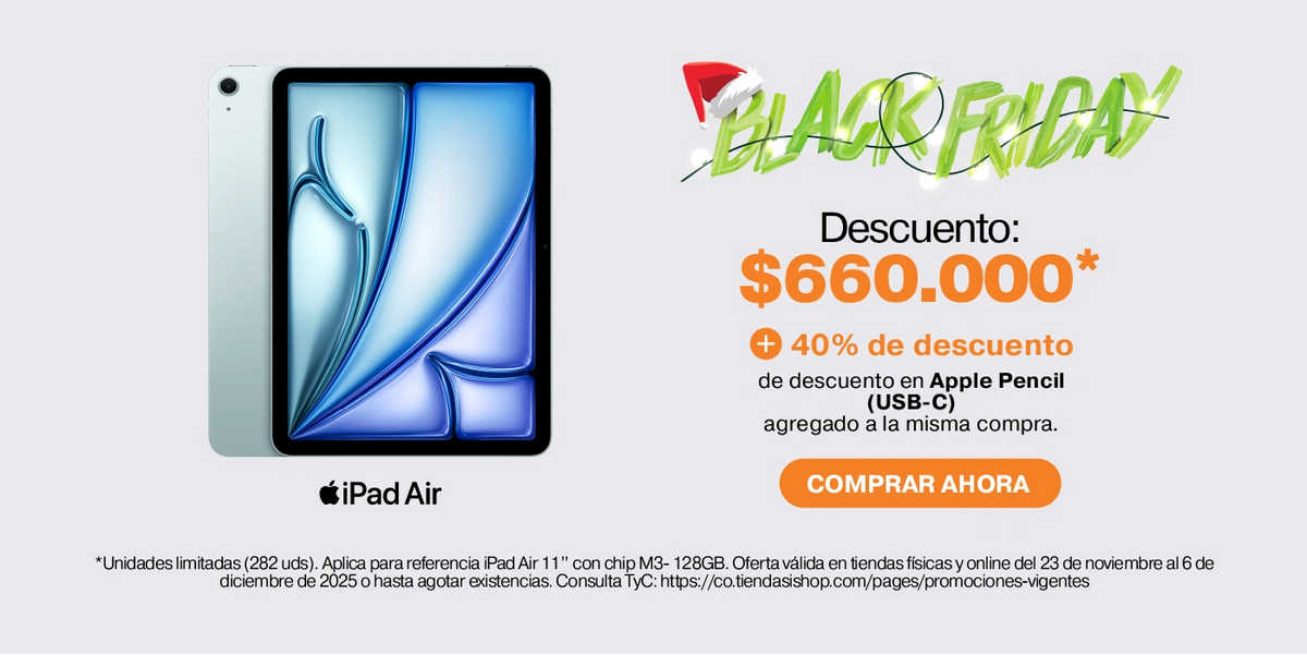 Descubre la nueva generación de iPad en iShop Colombia. El iPad Air M3 y el iPad A16 combinan potencia, diseño y versatilidad para que lleves tu productividad y creatividad al siguiente nivel. Encuéntralos en todas sus versiones y colores, con garantía oficial Apple y opciones de financiamiento. ¡Aprovecha y compra tu nuevo iPad en iShop Colombia hoy mismo!