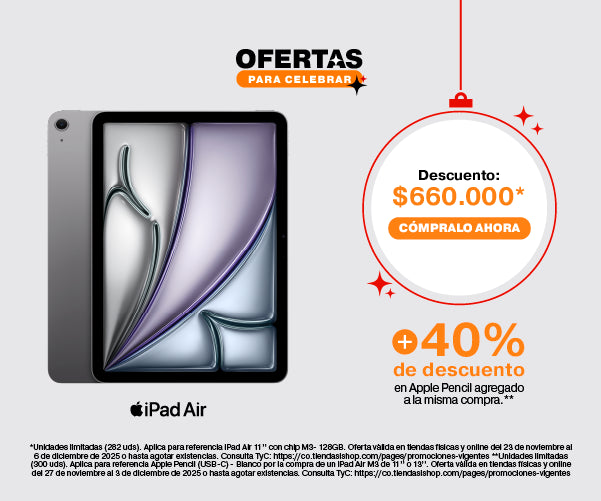 Descubre la nueva generación de iPad en iShop Colombia. El iPad Air M3 y el iPad A16 combinan potencia, diseño y versatilidad para que lleves tu productividad y creatividad al siguiente nivel. Encuéntralos en todas sus versiones y colores, con garantía oficial Apple y opciones de financiamiento. ¡Aprovecha y compra tu nuevo iPad en iShop Colombia hoy mismo!