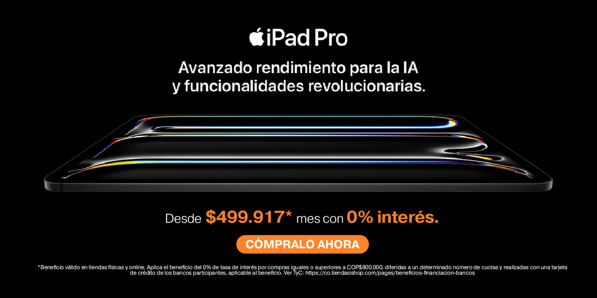 Descubre la potencia inigualable de las nuevas iPad Pro con Chip M5, el dispositivo más avanzado de Apple diseñado para profesionales y creativos. Disfruta un rendimiento superior, una pantalla impactante y compatibilidad con el Apple Pencil Pro para liberar todo tu potencial. Encuentra la versión ideal para ti y compra tu iPad Pro M5 en iShop Colombia, distribuidor autorizado Apple. ¡Aprovecha nuestras ofertas exclusivas y lleva tu productividad al siguiente nivel!