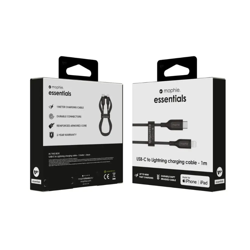 Cable Mophie essential trenzado USB-C a Lightning 60w 1m - Negro | iShop Colombia