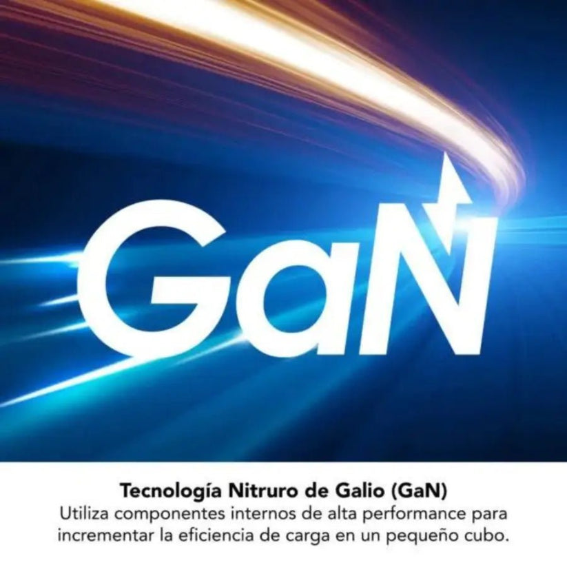 - Tecnología Nitruro de Galio (GaN): La tecnología GaN tiene un gran impacto en dispositivos 5G y carga super rápida. Utiliza componentes internos de alta performance para incrementar la eficiencia de carga en un pequeño cubo. Ahora puedes obtener una carga más rápida en un cargador más pequeño..