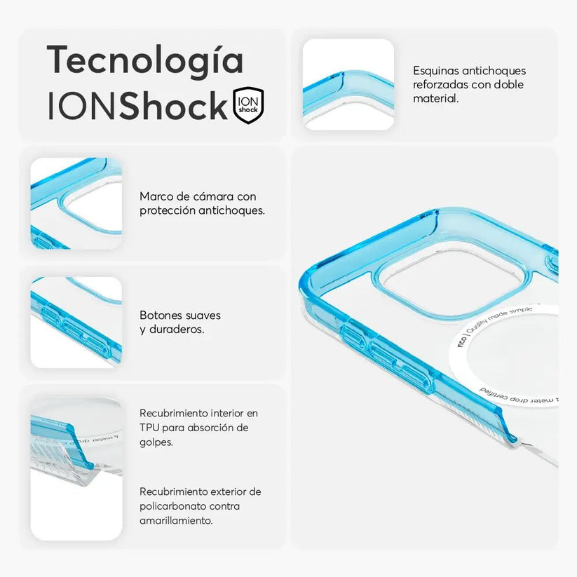 Tecnologia ION Shock para proteger el dispositivo contra caídas.