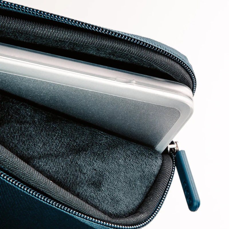 SleeveGuard es una funda de neopreno con detalles en imitación de cuero para portátil de 14 y 16 pulgadas. Sus materiales y grosor protegen el dispositivo contra la humedad y los golpes.