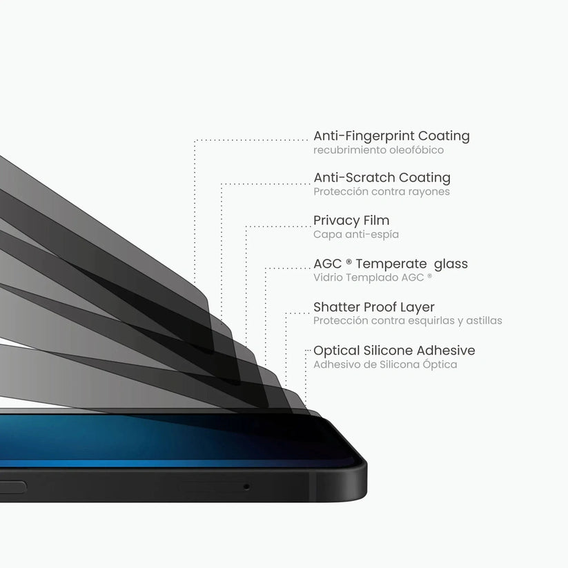 Dale a tu iPhone la máxima defensa y tranquilidad que necesita. PrivacyGuard protege tu pantalla de golpes, rayones y ojos curiosos. Todo lo que necesitas para mantener tu iPhone y tu información a salvo.